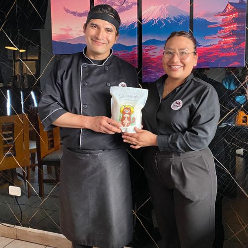 Es un arroz esponjoso que permite una muy buena absorción del vinagre. El grano mantiene su forma lo que al cliente le gusta y menciona que el arroz es muy agradable.